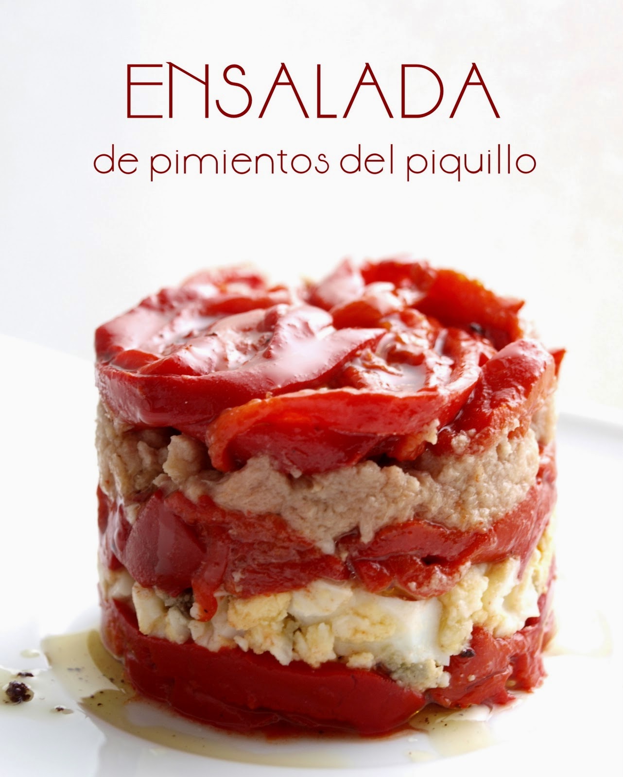 Una ensalada que en casa se hace a menudo, aprovechando los pimientos de piquillo recién asados. Con productos de primera calidad, está deliciosa.